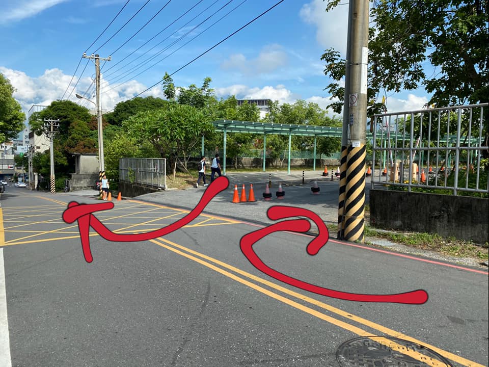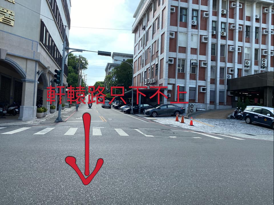 因軒轅路街道狹小,警局建議家長"汽車"接送時,請繞至東淨寺旁順坡到花崗的停車場。