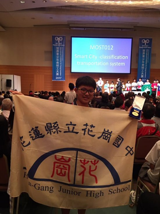 今年寒假甫獲得全國賽金牌取得代表台灣參加日本名古屋 2017IEYI 世界青少年發明展的蕭同學,
