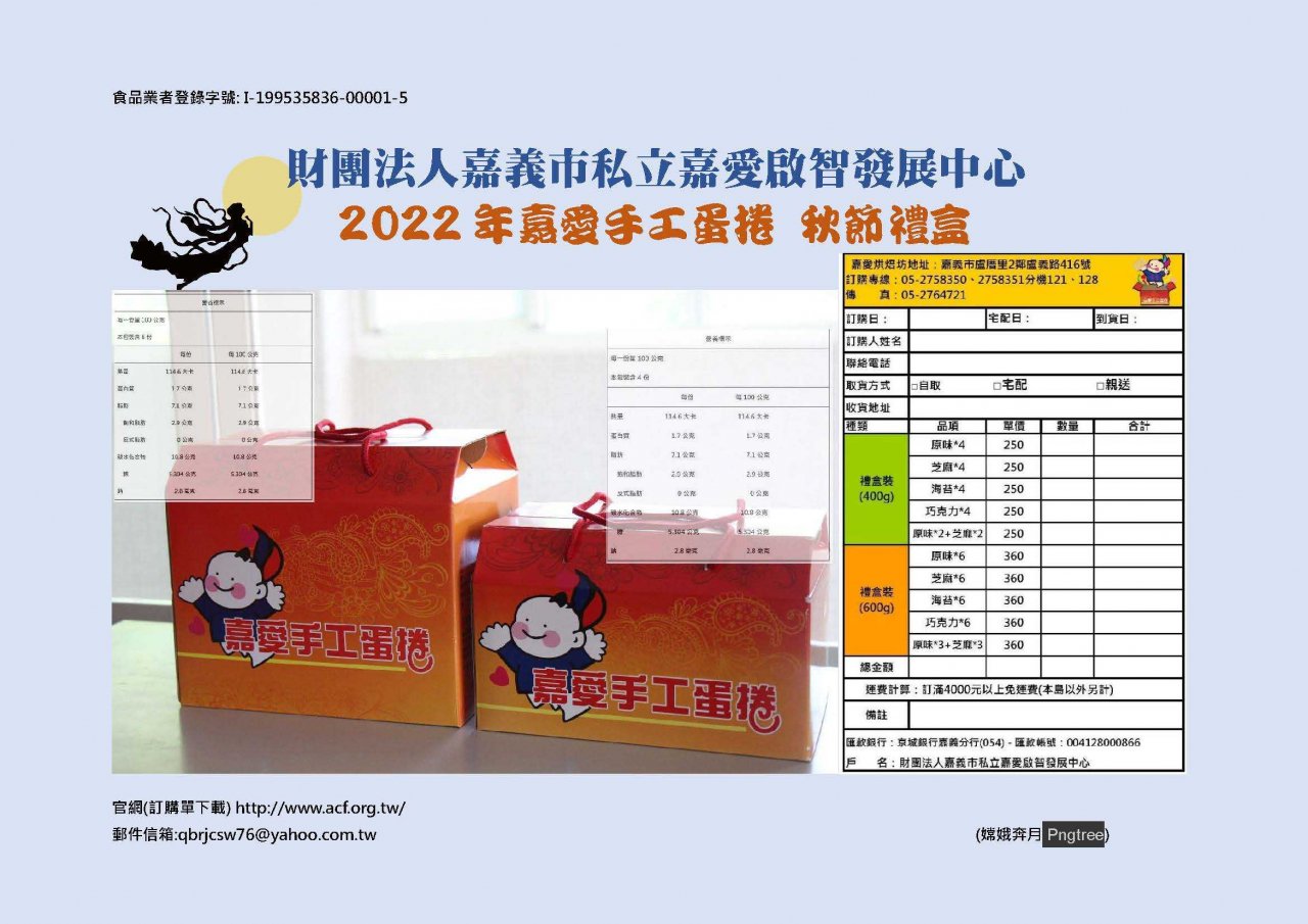 二、 檢附該市 5 家身心障礙福利機構、團體及庇護工場秋節禮盒資料 1 份。