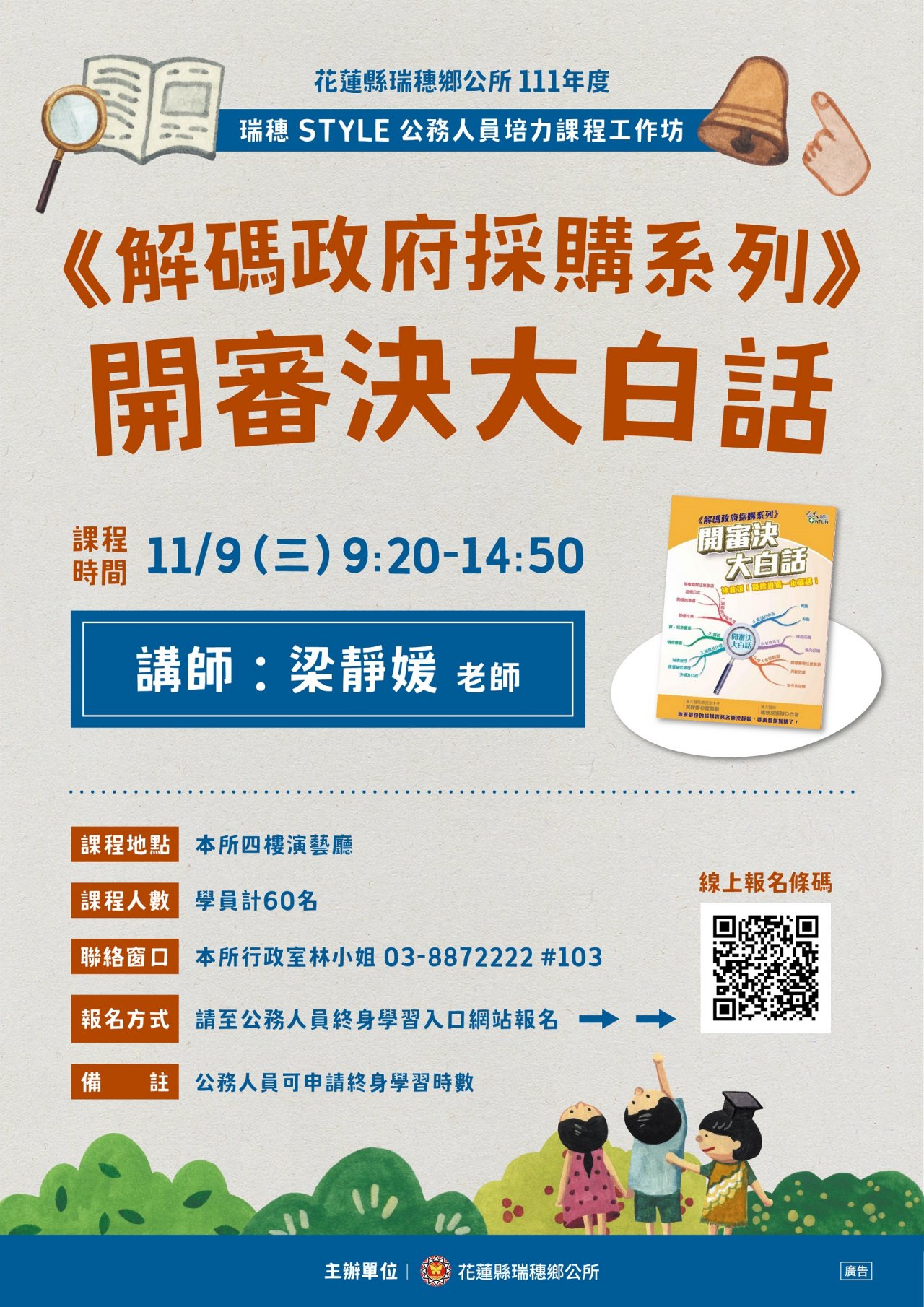 | (一) | 講題:解碼政府採購系列-開審決大白話。 |