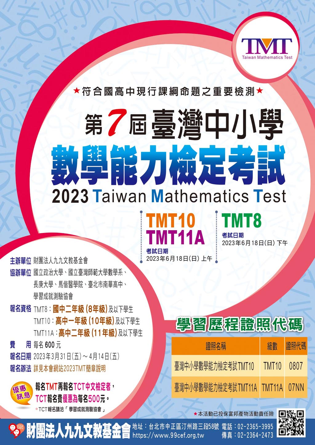 1. TMT8 :全國 8 年級(國中二年級)以下(含)在學學生