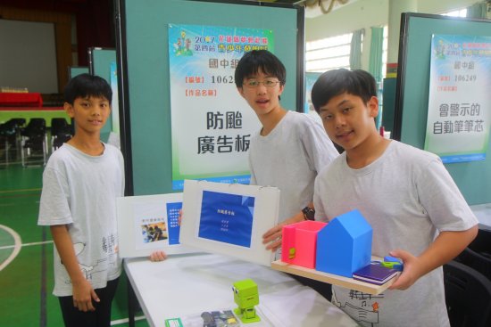 3.作品名稱:防颱廣告板。參賽學生:714 陳冠圻、 714 王昱棨、 714 潘聖寰。指導老師:林佑信主任、趙毓圻老師。